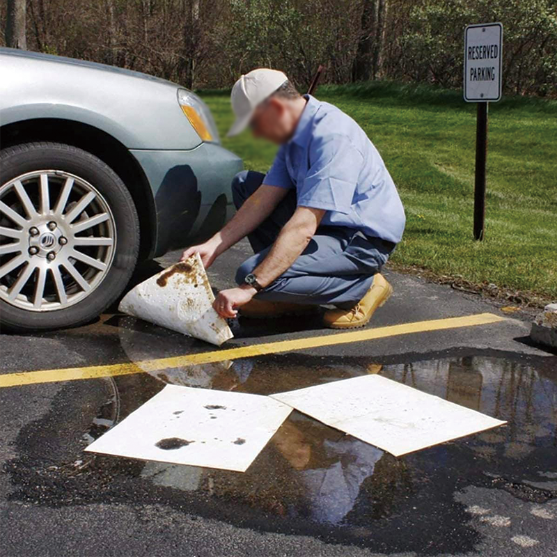 OIL ABSORBENT PADS CALL ATTENTION TO OIL DRIPS & LEAKS