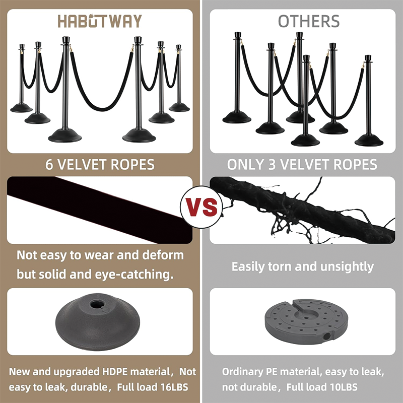 Black velvet stanchion are constructed by high hardness HDPE material which is sturdy and durable.Sun-proof and will not easily fade under high temperature,it will not corrode or crack with long-term use.