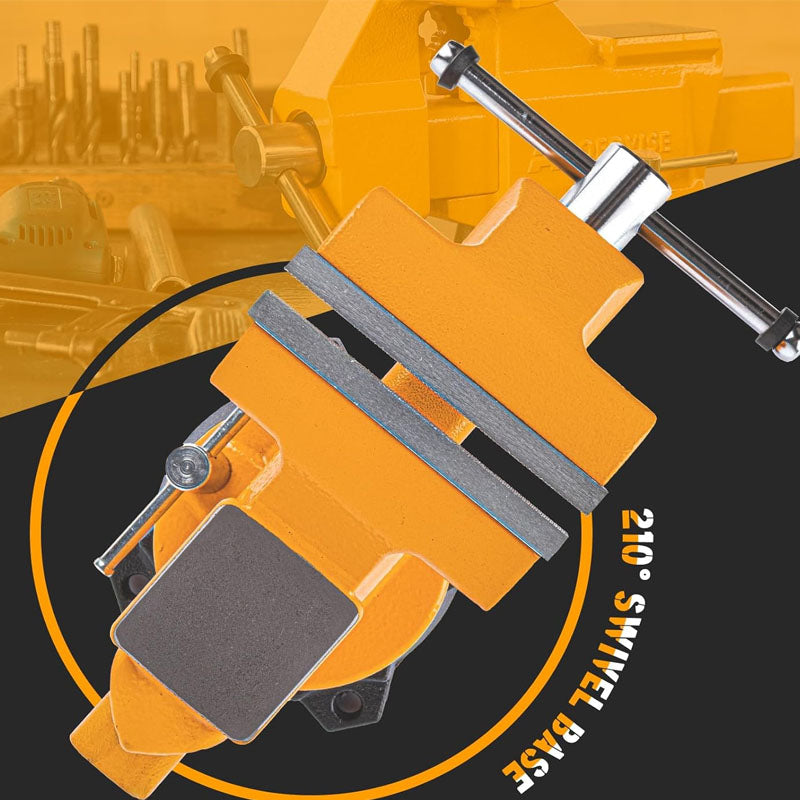 Swivel Base: The 210-degree swivel base provides a wide range of clamping angles. The optimized design allows for improved precision when using hand tools, eliminating the need for frequent insertion and removal of the workpiece