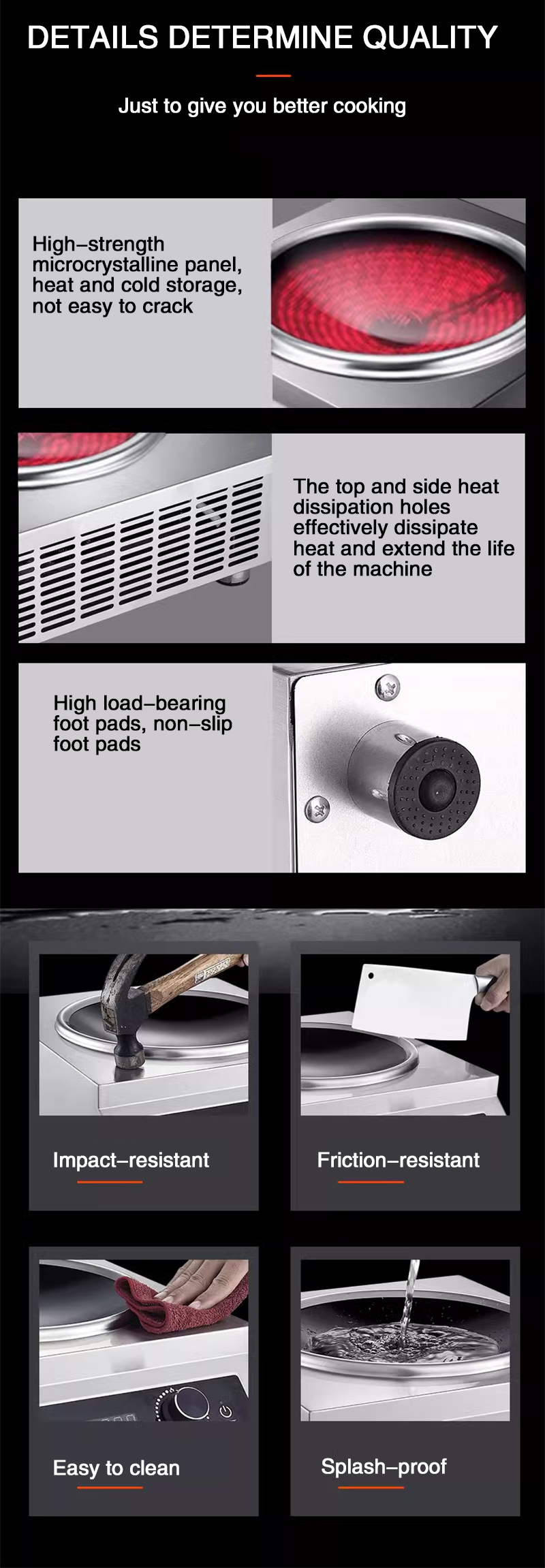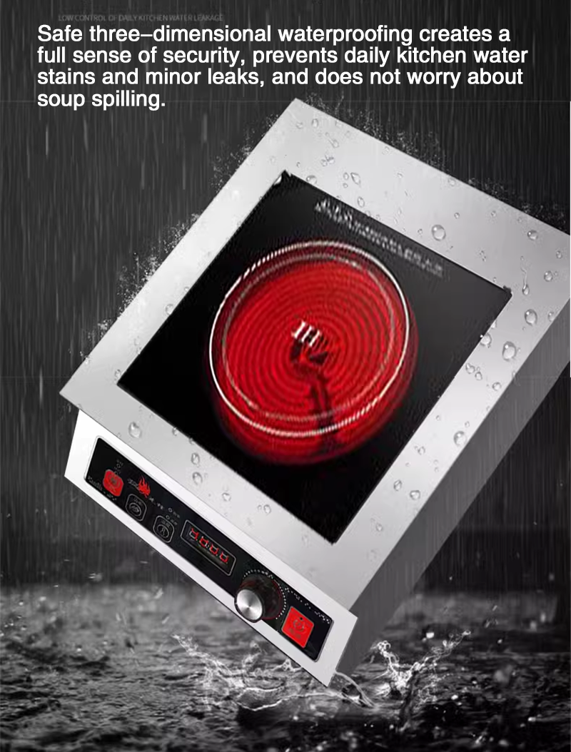 Introducing the 4200W Ceramic Stove, designed for high power cooking with its 8-level heat adjustment and concave surface for efficient stir-frying. Its stainless steel body is corrosion and oil-resistant, while the dual cooling system and overheating protection ensure safe and speedy cooking. Experience unmatched precision and convenience with the New Concave Electric Ceramic Stove.