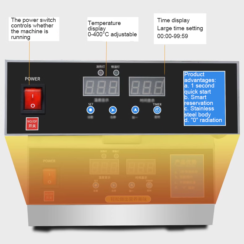 The temperature display can be adjusted from 0 to 400 degrees Celsius