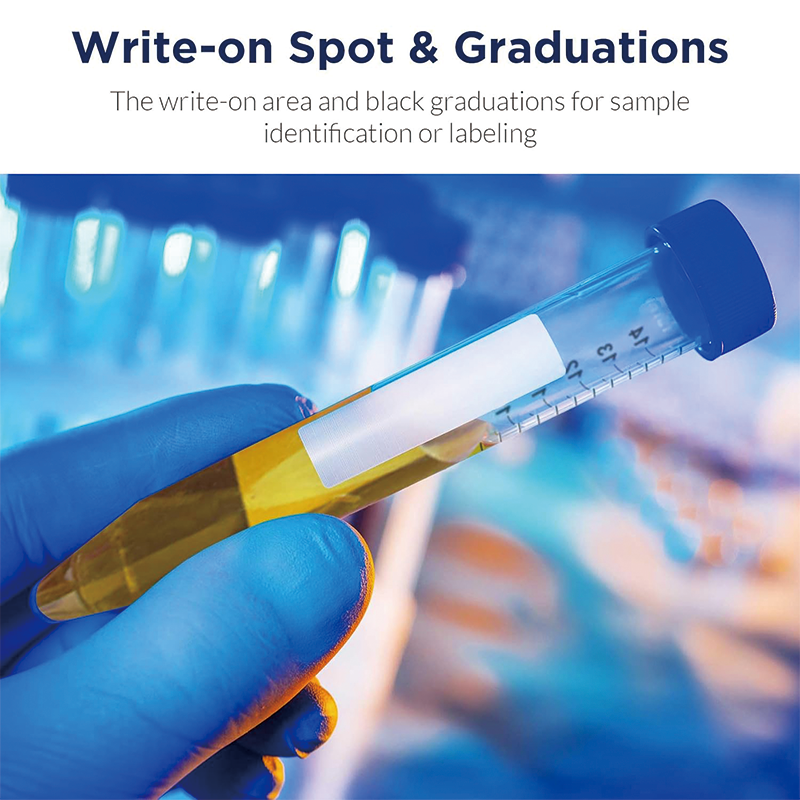 The conical centrifuge tube has a large white writing area, which is easy to mark and read.