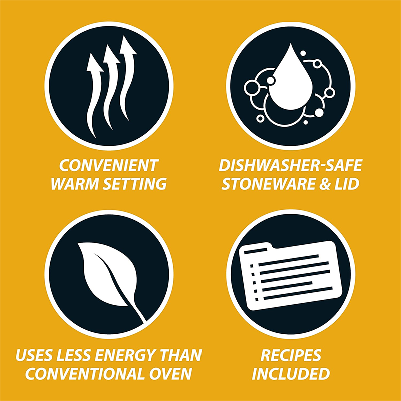 Minimal Clean-Up: One-pot cooking reduces dishes; lid and removable stoneware are dishwasher safe