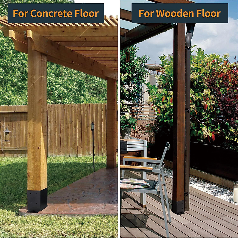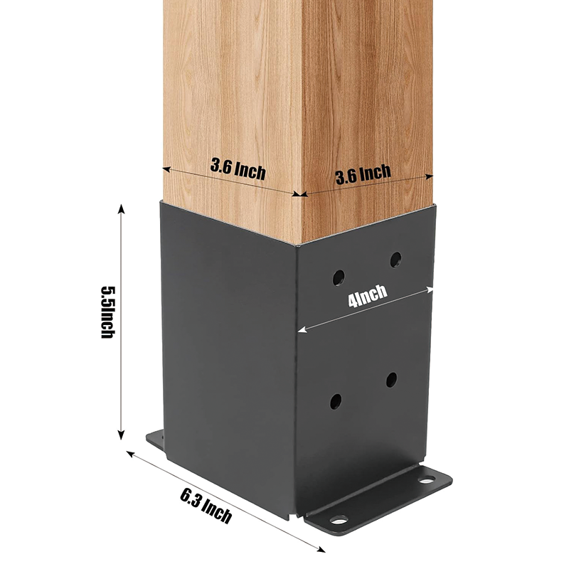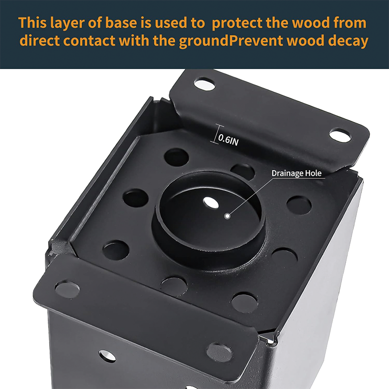 There is a partition at the bottom of the 4x4 post base, which is designed to be completely separated from the ground. Long term use will not cause the wood to rot due to rain. There is a small square box in the middle of base to make it more stable