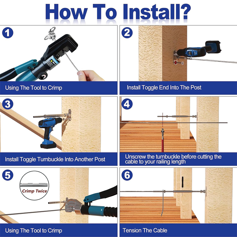 1/8" Cable Railing Hardware,T316 Stainless Steel Adjustable Angle Railing Cable Kits,Stair Cable Railing, Angle Cable Railing System (50 Pack)