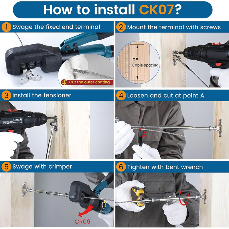 20Pairs T316 Stainless Cable Railing Kit/Hardware for Wood Post,1/8" System Angle 180° Adjustable Stairs Deck,Easy Installation