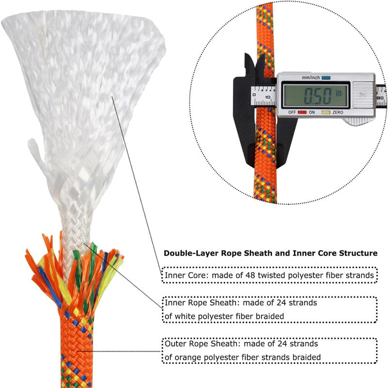 【Safety Structure】- Double layers high-strength polyester sheath, and 48 strands polyester inner core, fine weave, tight and strong, ensuring durability and longevity.