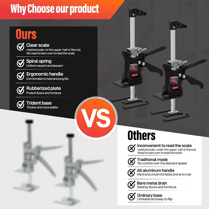 Drywall Lift, Hand Jack Tool, Effort Saving Arm, Hand Jack Tool For Leveling, Furniture Lift, Precision Controlled Slow Descent, 12 In 400 Lbs 2 Pcs