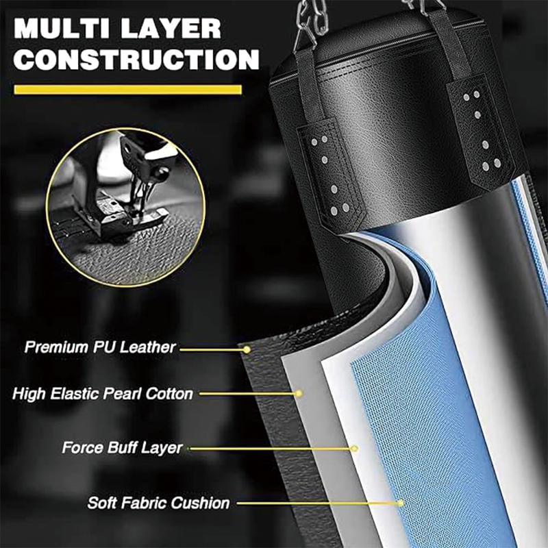 Please note:Heavy punching bag Comes unfilled, easy to carry and storage. You can fill it up with sawdust, sand, old cloth, shredded cotton fabric, sponge and more. Please don’t only install sand, the filling preferably no more than 80 pounds. Take your boxing skills to the next level with the Punching Bag!