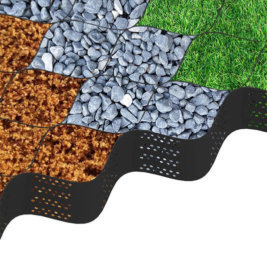 2. Geogrid pavers are made of high-density polyethylene (HDPE) material, ultrasonically welded, with tensile strength and high lateral resistance.