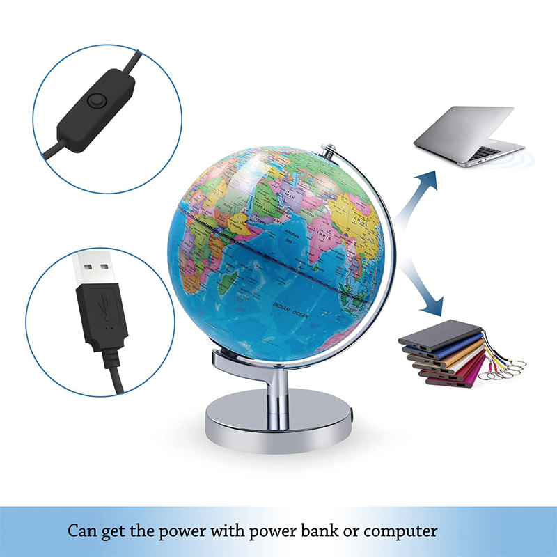 8 Inch Educational Geographic Globes with Stand Built, Illuminated World Globe 2 in 1 Interactive Educational Geographic Earth Globe Learning Toy