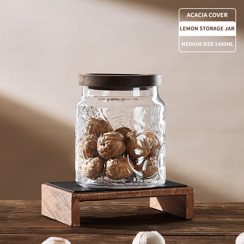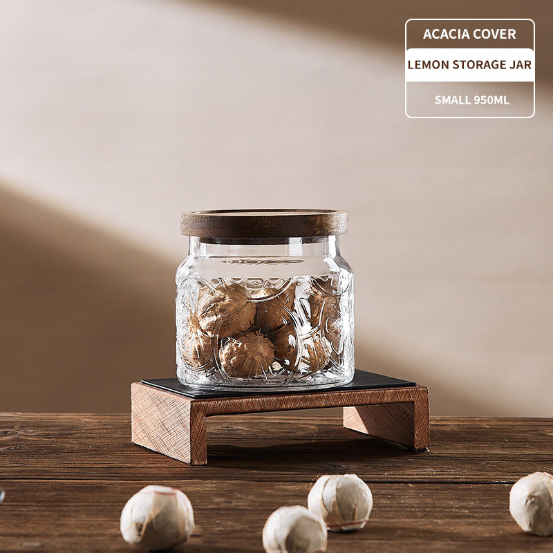 Soda-lime glass + acacia wood/mechanism