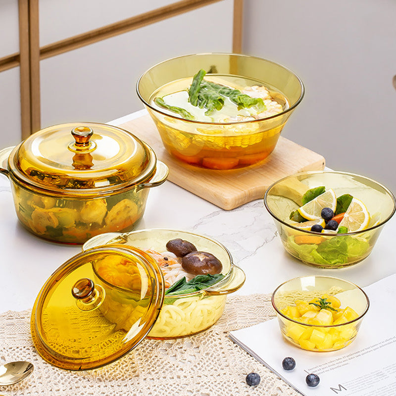 - Lead-Free Glass Bowl Set European-Style Household Heat-Resistant Microwave Oven Special Tableware Set [Cold-Resistant And Heat-Resistant]