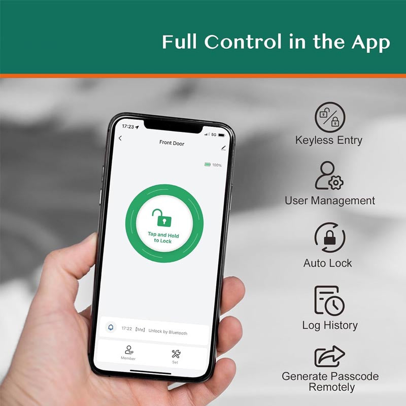 [Convenient Access Management via the App] Take complete control of access management with our intuitive mobile app. Grant permanent or temporary unlock access to your family members, remotely generate one-time passcodes for visitors, and effortlessly keep track of unlock records—all from the convenience of your smartphone.