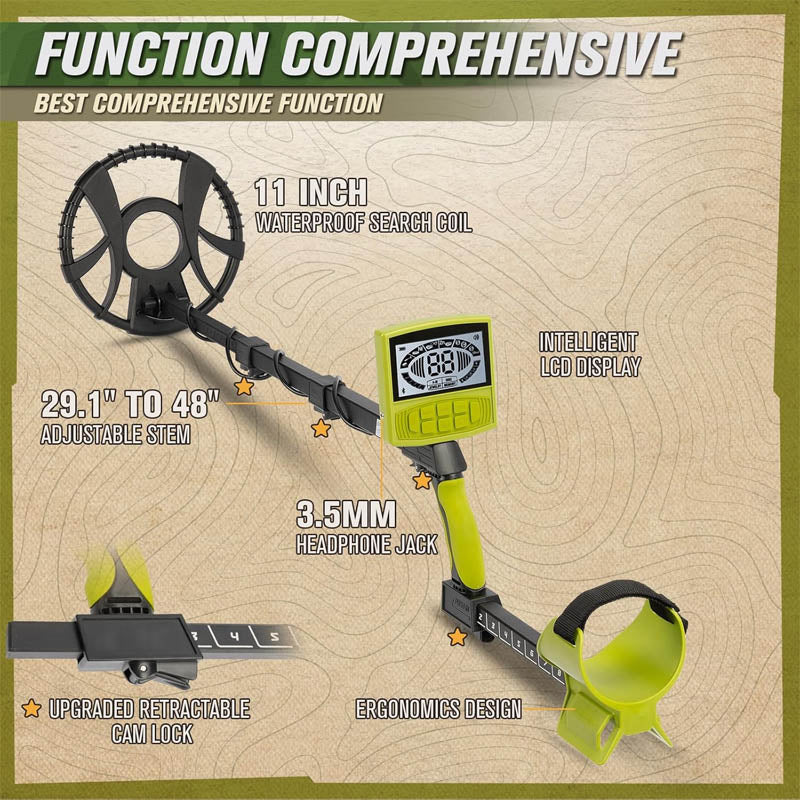 【Waterproof and Versatile】With a waterproof search coil and a long adjustable pole, our metal detector is perfect for outdoor use, such as on the shore, beach, stream, or in the yard. You can even take it underwater to explore hidden treasures.