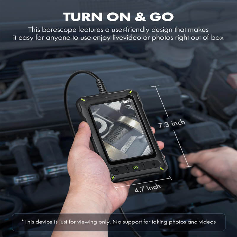 Clear 4.3" IPS screen - Featuring a bright 4.3" IPS screen, this camera provides clear real-time inspections. This standalone device operates without Wi-Fi or software downloads. Simply turn on the display, and it’s ready to go