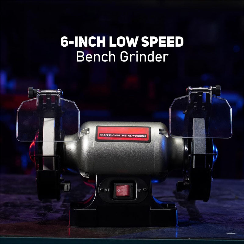 LOW-SPEED: Slow speed bench grinder equipped 1/3HP motor, provides 1750RPM speed, more suitable for accurate grinding operations, making your work more precise