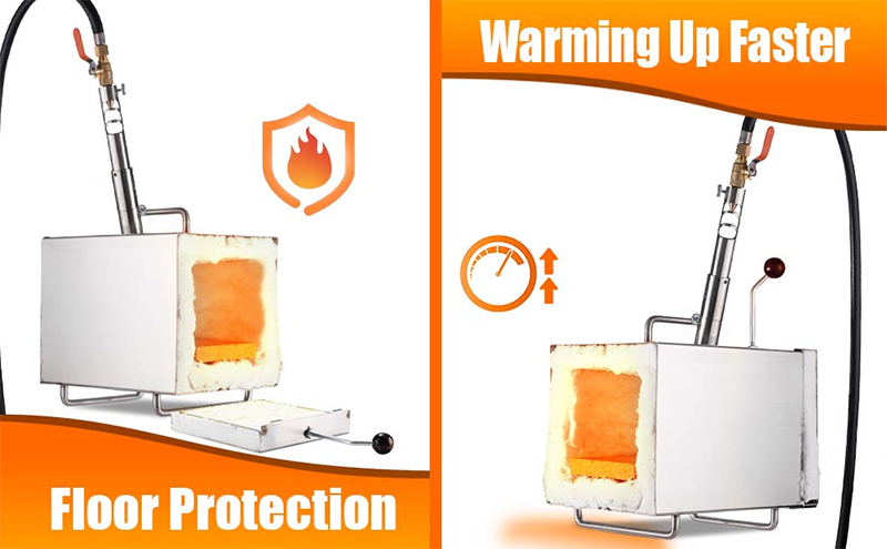 - 7.8"x10" Large Capacity Square Propane Gas Forge Machine, Single Burner Forge Kit for Forging