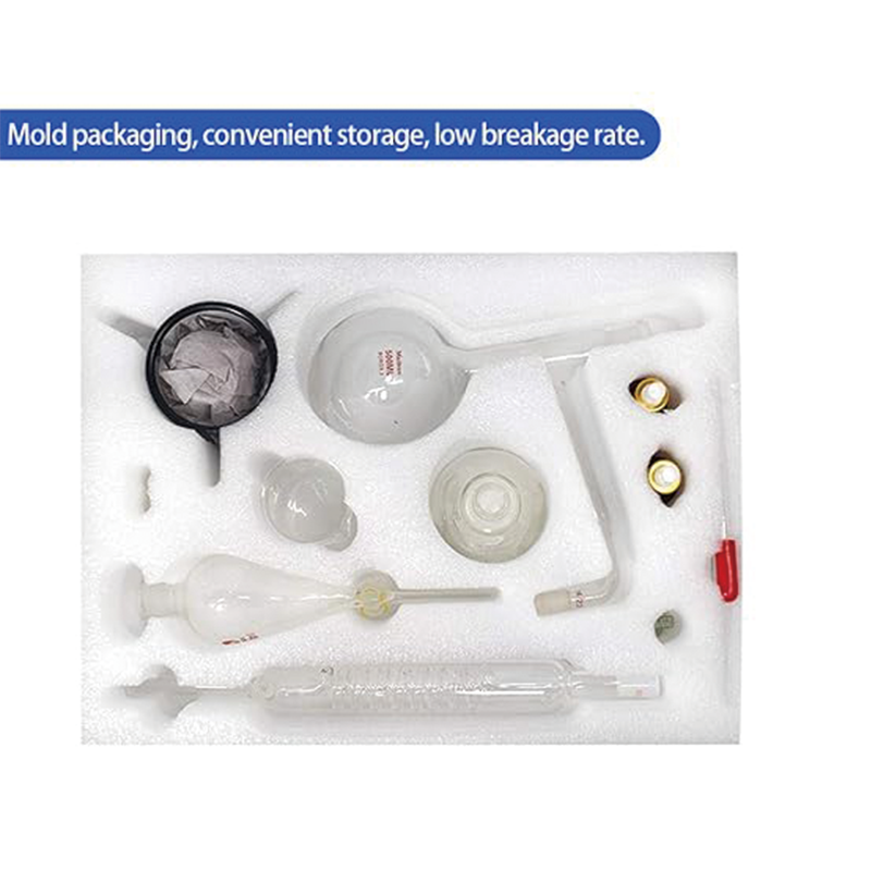 Large Capacity Essential Oil Distillation Kit: Featuring a large capacity flask, our distillation apparatus facilitates batch production of essential oils, increasing extraction rates and yielding purer materials than conventional methods.