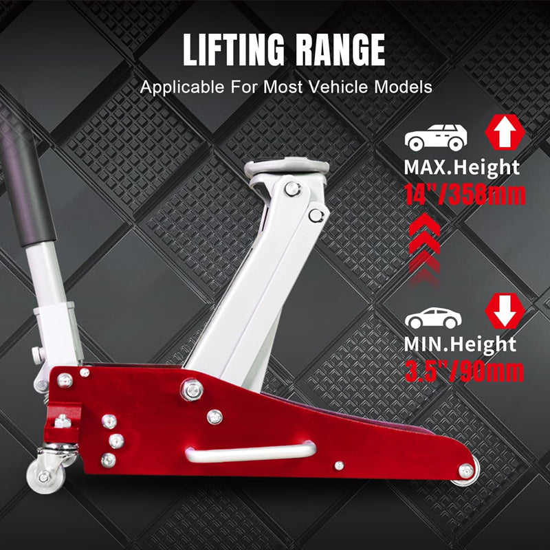 - 1.5 Ton 3000 lbs Capacity Floor Jack Hydraulic Low Profile Aluminum Steel Racing Floor Jack