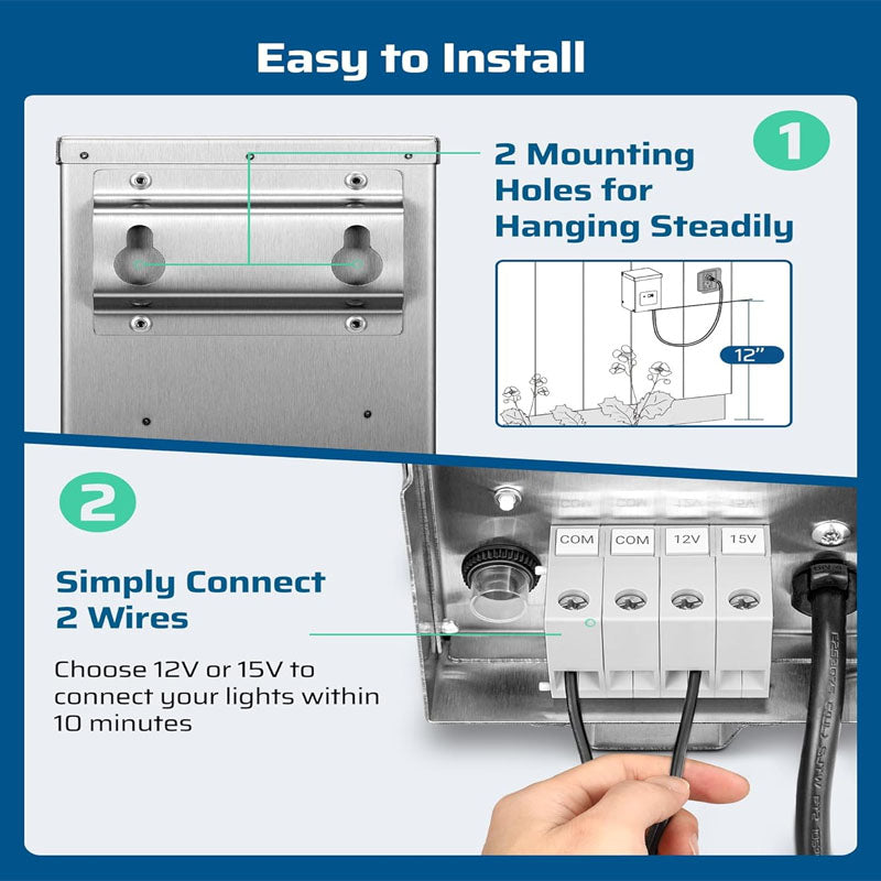 150W Lighting Safety Transformer with Photocell Sensor & Timer Outdoor Waterproof Transformer for LED Lighting Spotlight