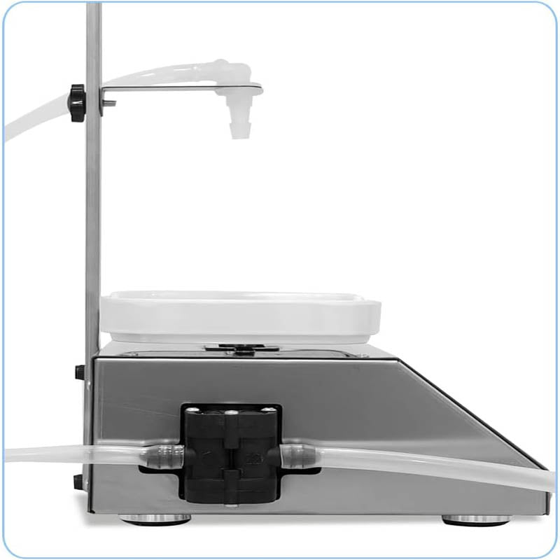 Filling range: 10-3000g.Division value: 1g. Applicable bottle height: 0-32cm/13.6in. Flow: ≤3. 5L/min (adjustable). Suction: ≤2m. With high-precision diaphragm pump, the liquid will not pass through the pump,especially suitable for food.