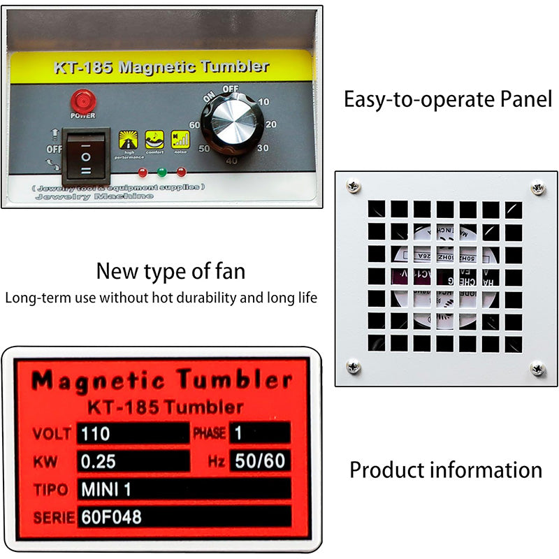 Jewelry Polisher with 7.1”(180mm ) Magnetic Tumbler Polishing Barrel & 200g Burnishing Pins for Jewelry Automatic Forward and Reverse Rotation