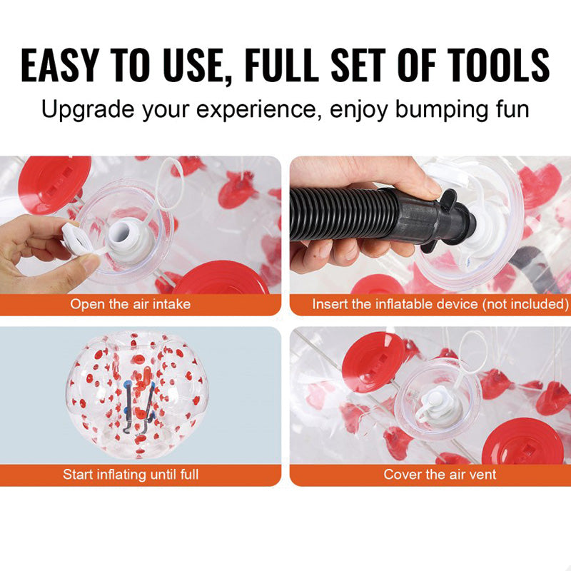EASY TO INFLATE/DEFLATE- You can inflate/deflate the bubble balls with the electronic air pump, compressor or air mattress pump within minutes.(PUMP NOT INCLUDED)
