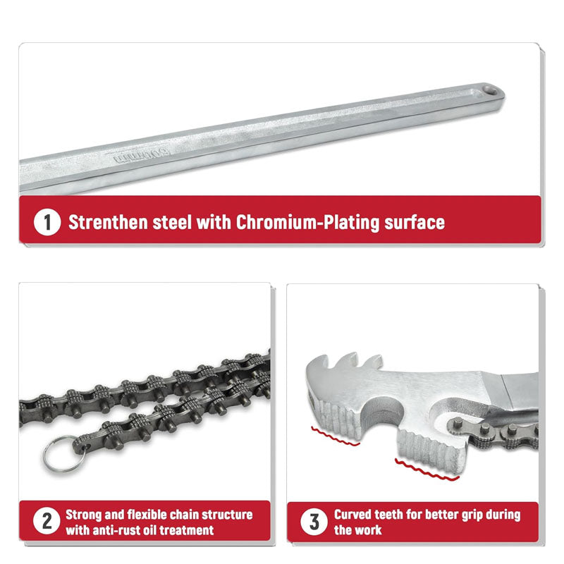 24 Inch Heavy Duty Carbon Steel Chain Pipe Wrench Adjustable Large Chain Oil Filter Wrench