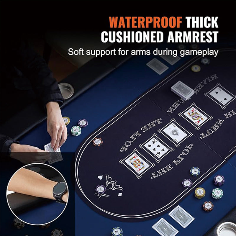 72 inch Large Poker Table: This perfect-sized poker table accommodates up to 8 players simultaneously, making it ideal for family gatherings, entertaining friends, bar games, and more. The comfortable and convenient gaming experience will make you feel like you're in a Las Vegas casino, allowing you to enjoy games like Texas Hold'em and other card games to your heart's content.