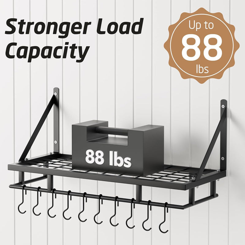 Stylish metallic pot rack wall mounted storing utensils enables everything to be put together within arms reach, never hurry to look for what you want here and there.