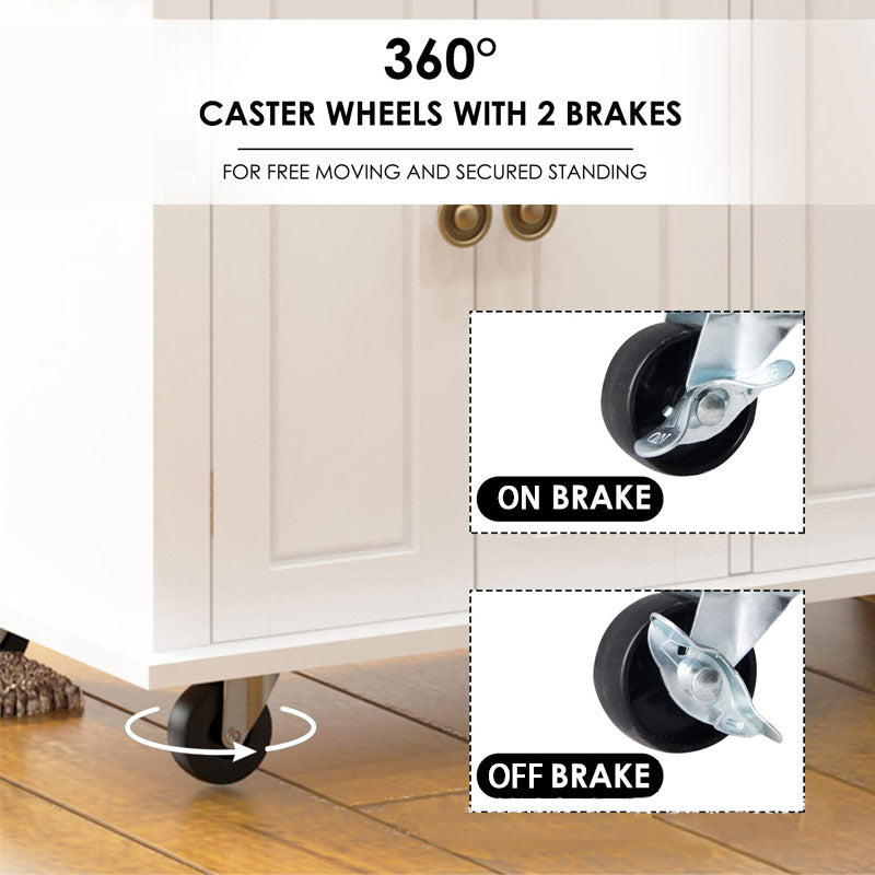 Movable Kitchen Island Cart With Solid Wood Countertops, With Storage Cabinets, Rolling Kitchen Table With Spice Rack, Towel Rack And Drawers