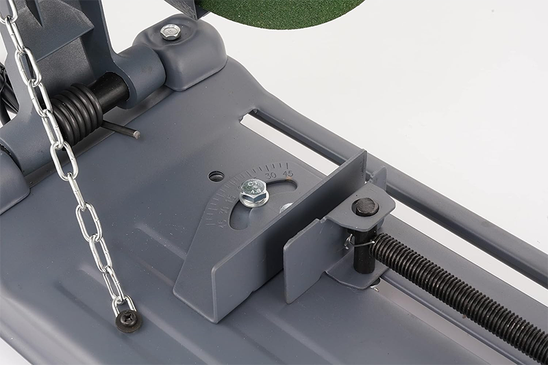 The metal cut-off saw's unique 45-degree adjustable fence is designed to make angle cuts quickly and accurately without the use of a wrench.