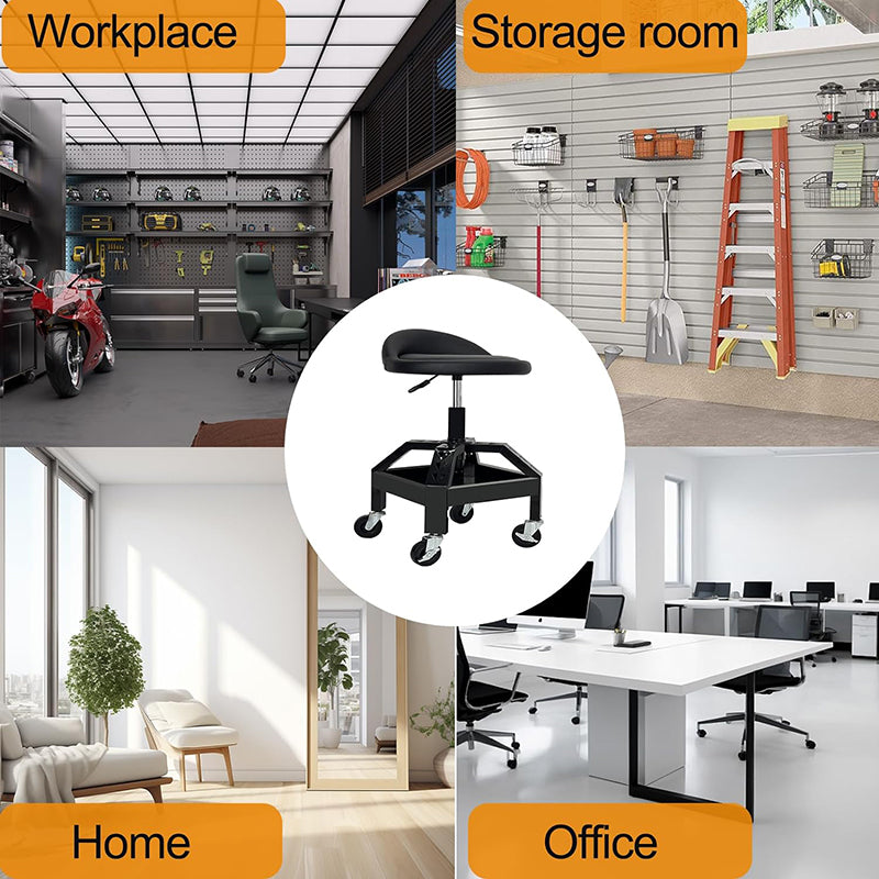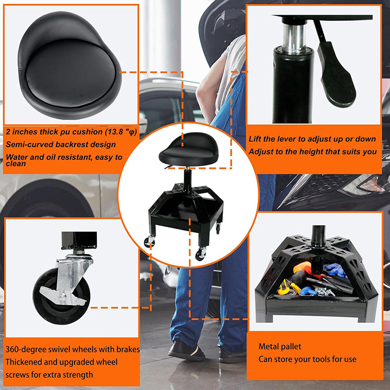 Adjustable Height Rolling Garage Shop Seat Garage Stool with Wheels Heavy Duty Mechanic Stool 330 Lbs Capacity Storage with Tool Tray