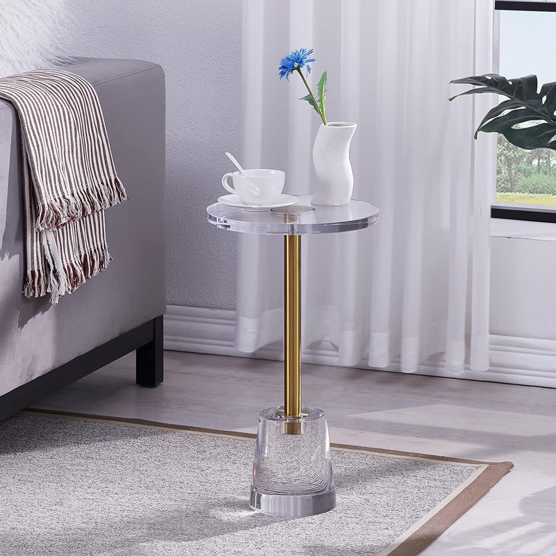 Acrylic Side Table 12 x 12 inch Round Tabletop 20 inch High Clear Small Round End Table with Gold Post