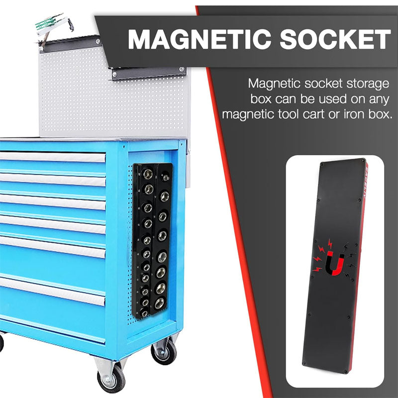 【Material】:1/2", 1/4" and 3/8" magnetic socket organizer is made of high quality ABS material, which is hard, wear-resistant, oil-resistant and has strong impact resistance.
