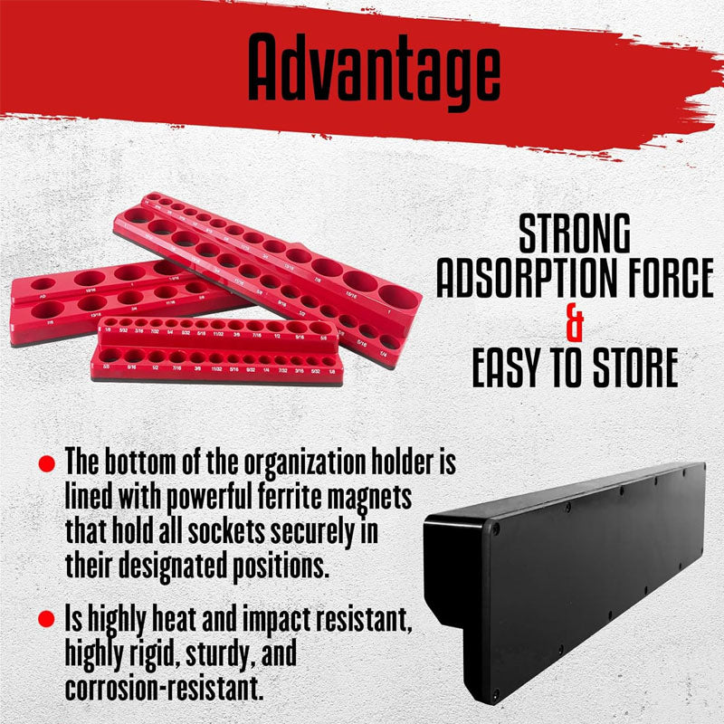 6-Piece Magnetic Socket Organizer Set  1/4" 3/8" 1/2" Drive Magnetic Sockets Trays Holds 143pcs SAE & Metric