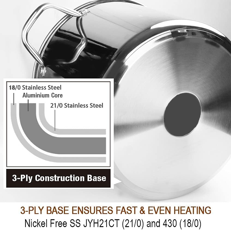 Stock Pots Commercial Grade Large Stockpot 20 Quart with Lid - Nickel Free Stainless Steel Cookware - Healthy Polished Stockpot - Heavy Duty Induction Stockpot