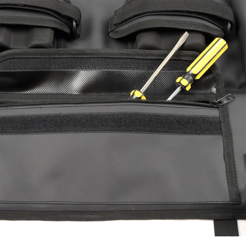 3、Tool Bag for Easy Storage: There is a large tool bag on the mat, which can store some auto repair tools, which is very convenient to use. The double-sealing design with zipper and hoop and loop makes your stored items not easy to fall.