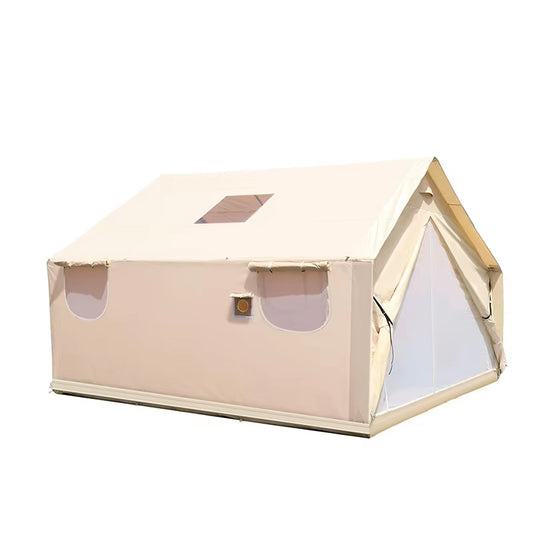 The outdoor changing room tent's roof and side mesh windows maintain air circulation and increase ventilation.