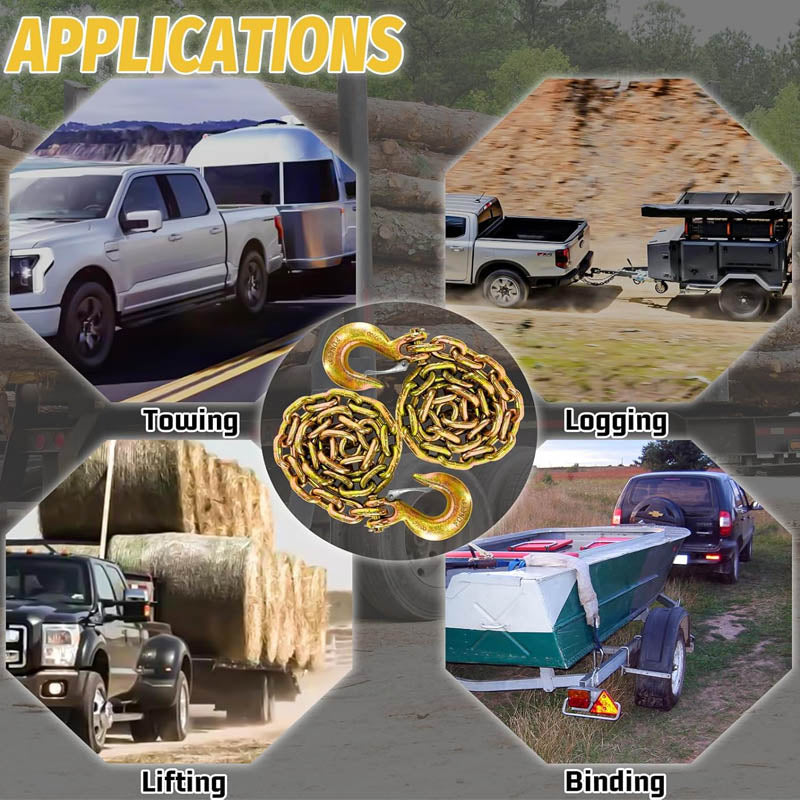 2 Pack Tow Chain 3/8" Trailer Safety Chains G80 Tow Chains with G70 Clevis Safety Hooks 35" length 27000 lbs Break Strength 7100 lbs