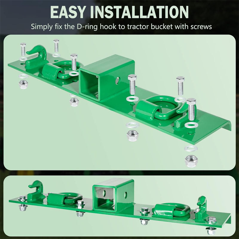 【Protect Tractor & Improve Work Efficiency】The Compact Tractor Grab Hooks are placed on the front of the tractor, making it easy to lift, tow or move heavy loads and securely protect your tractor during transport.