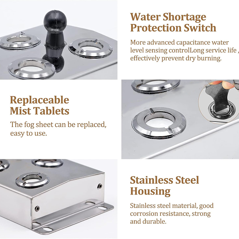 Put the atomizer in the water, then plug in the power supply, and the mist will appear. The copper cavity helps better heat