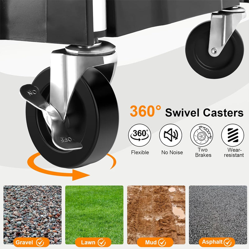 Comes with 4 heavy duty 360°rotating casters, you can smoothly and quietly move the utility tool cart to any direction you want to