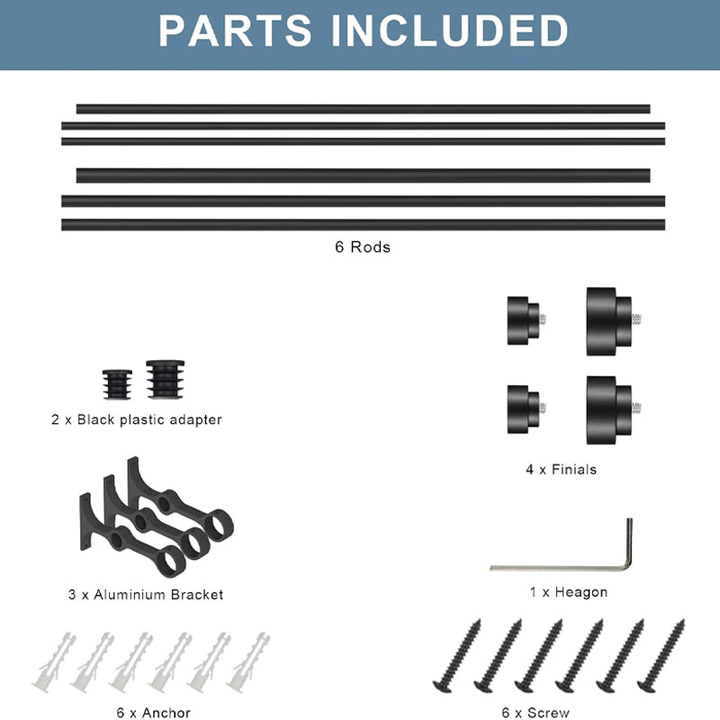 The double curtain rods are made of high quality metal/steel, the brackets and the finials are made of Aluminum alloy.