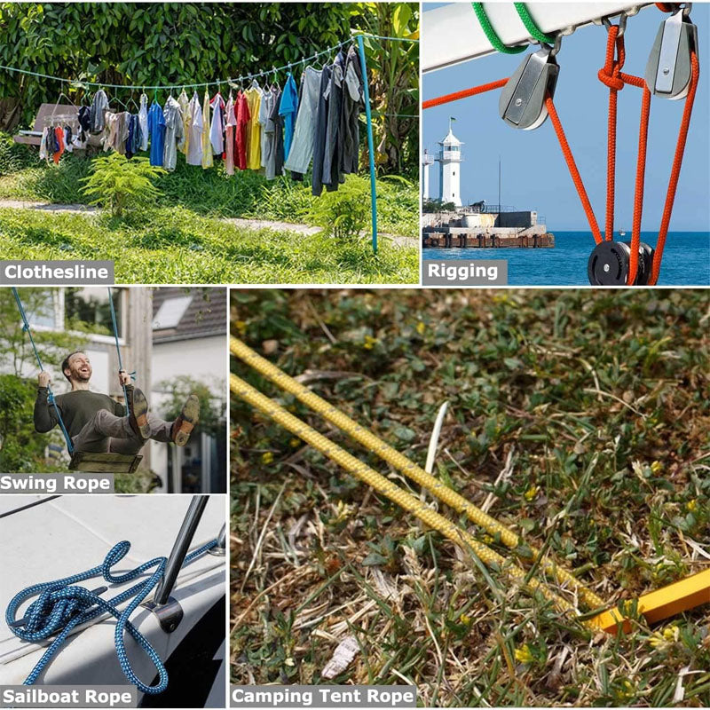 【Perfect Material】- Naturally resistant to a wide range of wear and tear elements: weather, moisture, extreme temperatures, UV rays, chemicals, and abrasions.Long lasting utility rope, great for tree work, halyard, hiking, camping, marine, swing, etc.