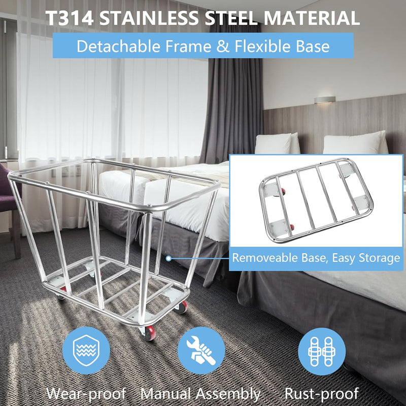 The main frame of the rolling laundry basket is made of high-quality stainless steel, with exquisite welding process and bolt fixing.