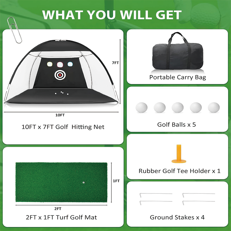 10 x 7ft Golf Net, Indoor Outdoor Home Golf Swing Training, Golf Hitting Practice Net for Backyard Driving, Indoor/Outdoor