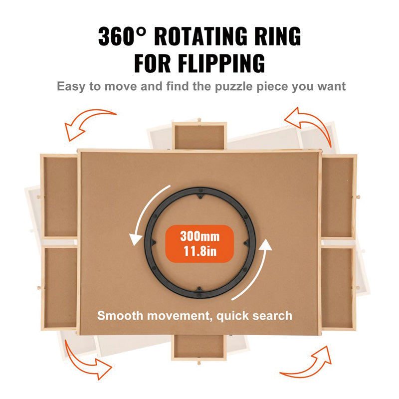 360° Rotating Ring: This portable puzzle tabletop can smoothly rotate 360°, allowing you to quickly and easily turn it to your desired position and find missing puzzle pieces. It makes playing puzzle games with friends easy and convenient, maximizing your puzzling potential.