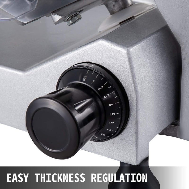 Comes with thickness regulator for adjusting the thickness of the meat slice (0-0.6"/1-16mm) at will.
